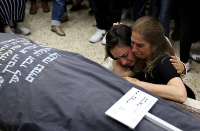 Terrorists shoot two mourners to death at a funeral for a police officer.