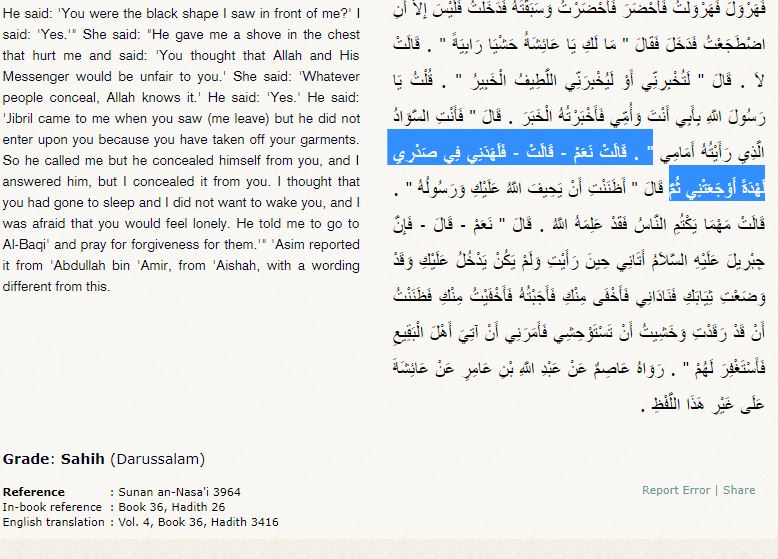 A woman getting struck by a fully grown man and yet she still stands there? The fact that Aisha still stood there, not falling down from the assumed blow, proves that Aisha was not hit by her father’s fist, but poked hard by her father.  (Discover the Truth)