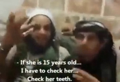 Video of Islamic State members at one of the caliphate's sex slave markets in November, 2014. A price list was released setting the rate Yazidi and Christian girls between ages 10 and 20 at $130. Women between the ages of 20 and 30 were being sold for $86; a 30 to 40 year was being sold for $75 and 40 to 50 year old women were listed for sale at a price of $43.